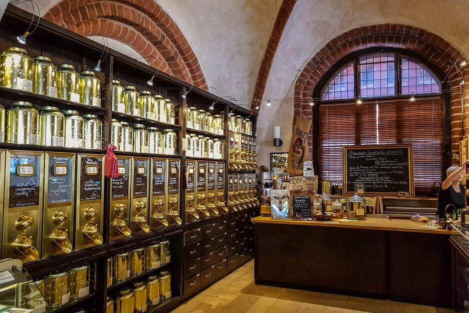Gleich vorweg: Restaurants und Cafés sind in der Altmark dünn gesät. Das liegt daran, dass nach der Wende viele Menschen aus der Region weggezogen sind auf der Suche nach besser bezahlten Jobs. Wenige sind zurückgekehrt. Stattdessen kamen Unternehmer aus dem Westen, die sich hier ein eigenes Geschäft aufbauen. Sogar im Stil eines Wiener Kaffeehauses. So ist auch der Besitzer des Kaffeehauses Kaffeekult kein Einheimischer, wie er uns erzählt. Sein Café befindet sich im historischen Backsteinbau des Rathauses und wirkt urgemütlich mit seinem mittelalterlichen Gewölbe und den golden schimmernden Kaffeebehältern. Diese nehmen eine ganze Wand des Cafés ein und verströmen einen betörenden Duft nach frisch geröstetem Kaffee.