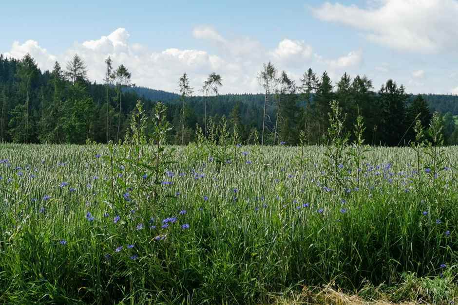 Unsere Fahrt durch die Region zeigt uns, dass die Bauern in Tschechien ihre Felder auf nachhaltige Art und Weise bewirtschaften. Wildblumen wachsen am Wegesrand. Uns fallen die Getreidefelder auf, in denen Kornblumen zwischen den Getreidehalmen wachsen. In Tschechien müssen keine Wildblumenstreifen an Waldrändern gesät werden, um Insekten anzulocken. Hier wachsen die Blumen noch, wo sie wollen.